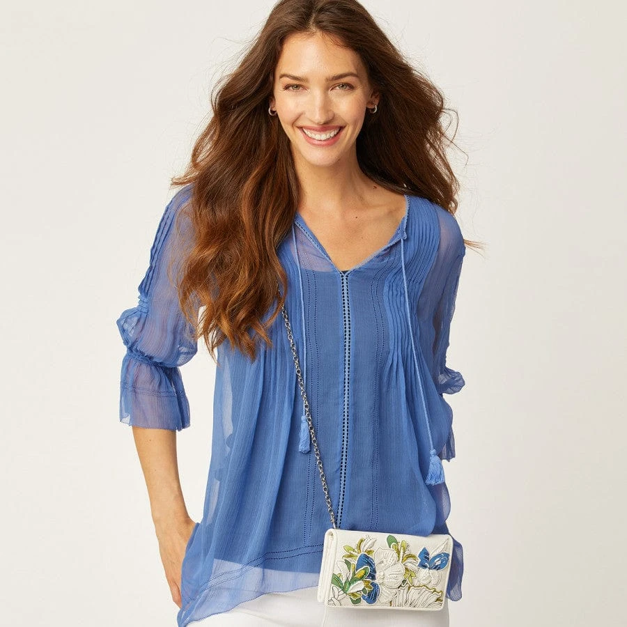 This many-pocketed wallet, with delicate handbeading and craftwork, is too pretty not to show off — that’s why we included a detachable chain strap.