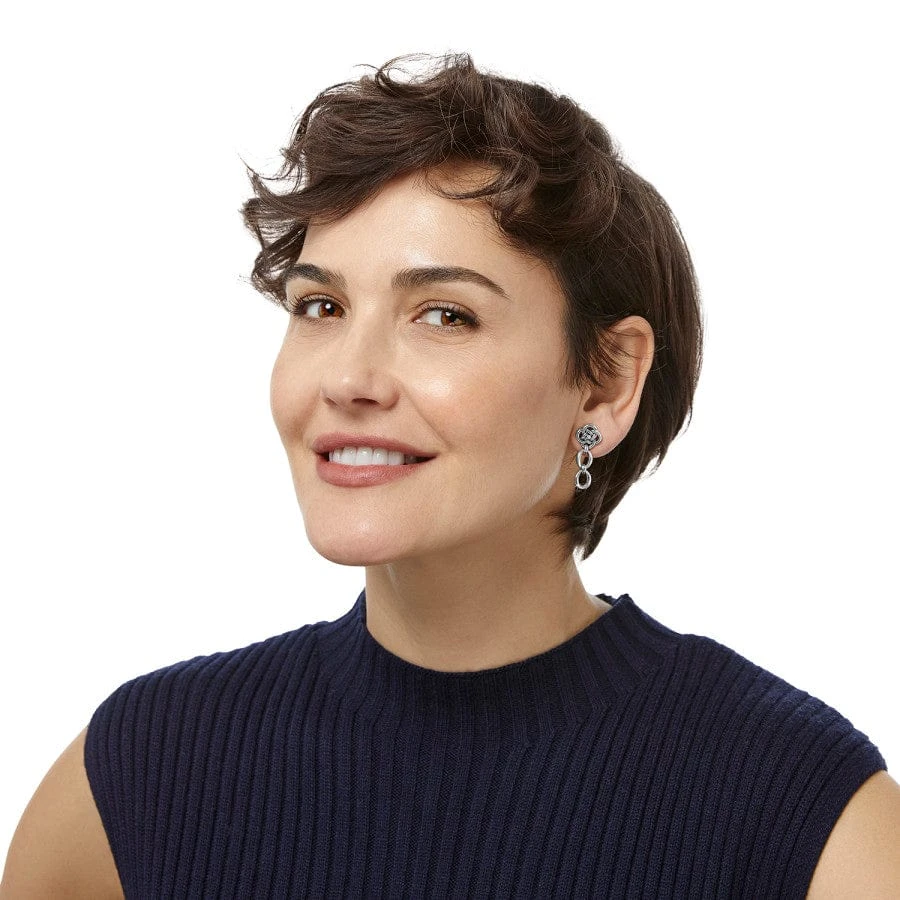 Two oval links drop from Celtic knots symbolizing eternal love and friendship on timeless-yet-modern earrings.