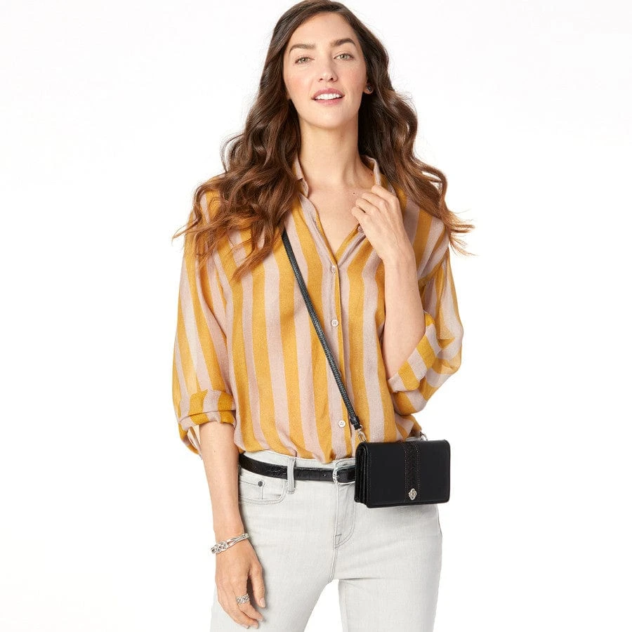 Wallet by day, minimalistic crossbody by night. So much more than a wallet, this is many pocketed wonder makes a chic statement with its hand-laced detail and Celtic inspired hardware.
