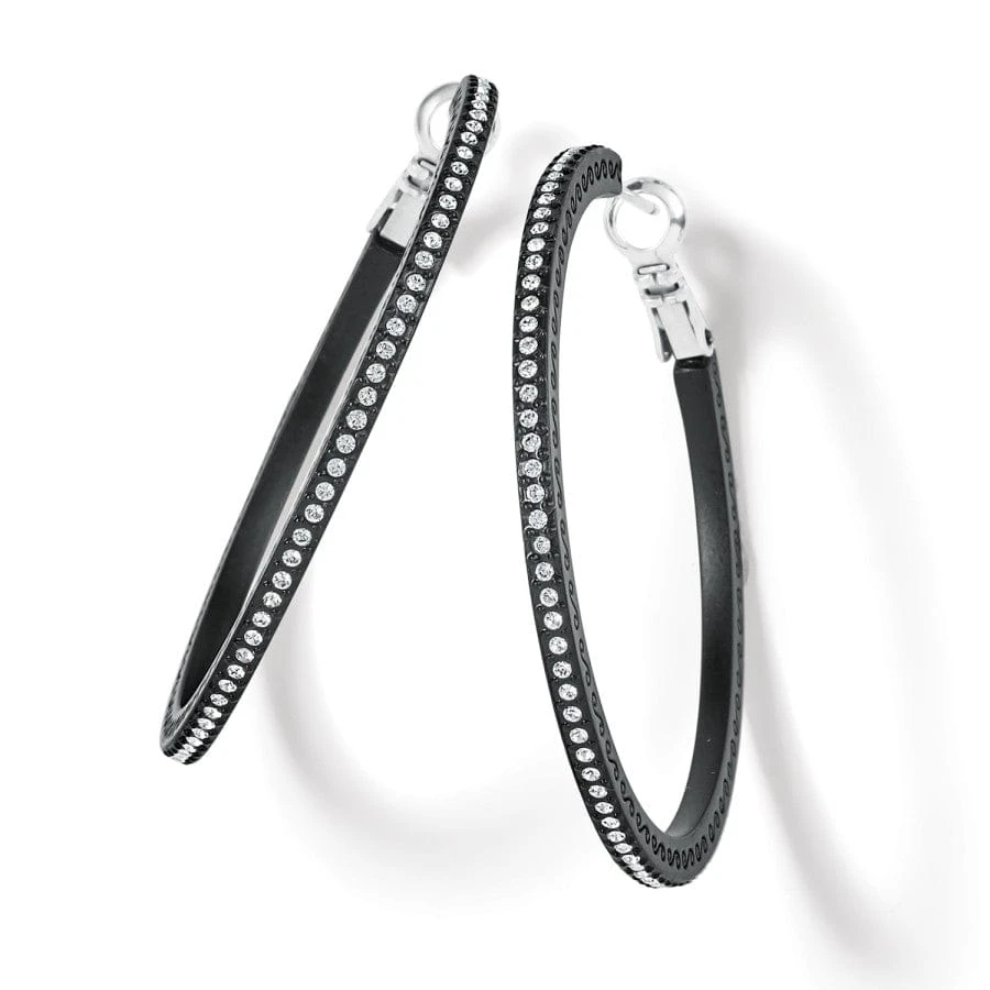 Fine crystal pave details sparkle against these chic black statement hoop earrings that transition effortlessly from day to night.