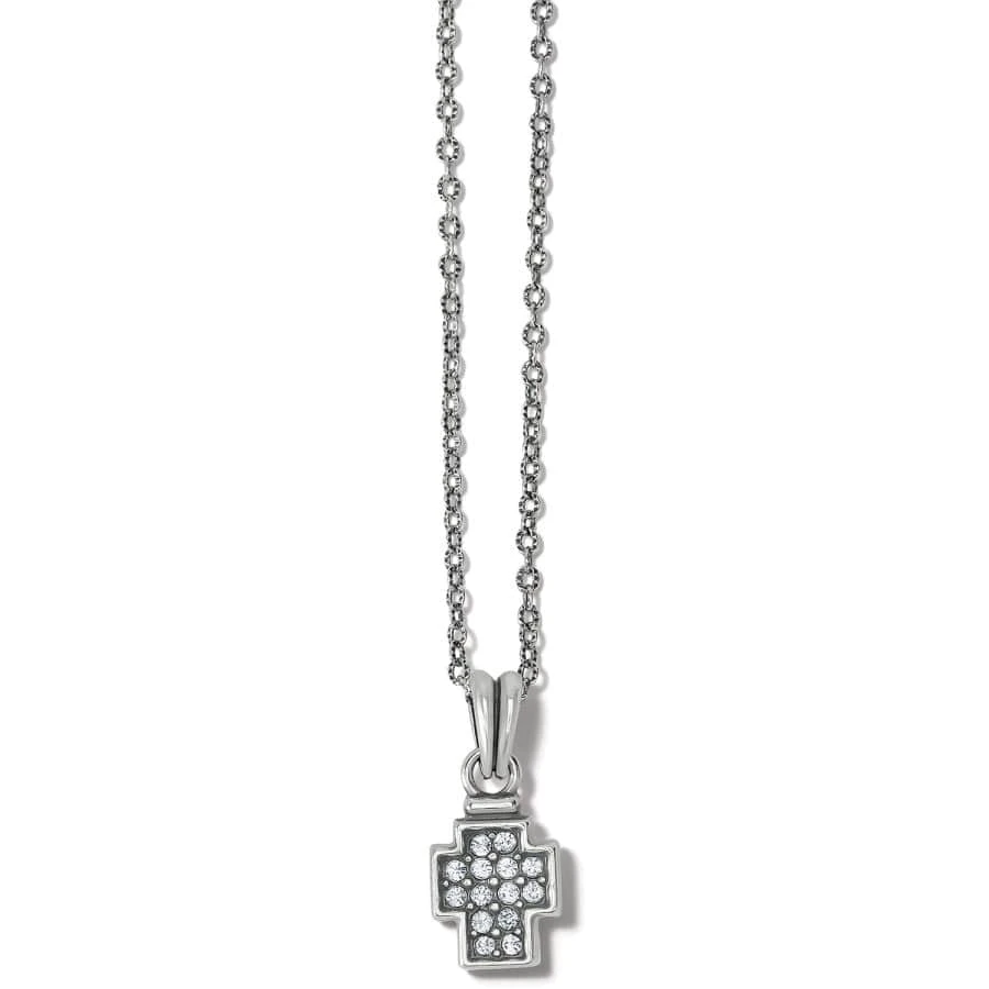 This petite cross pendant necklace with a hand-set pave crystal front reverses to wear as a single stone styling.