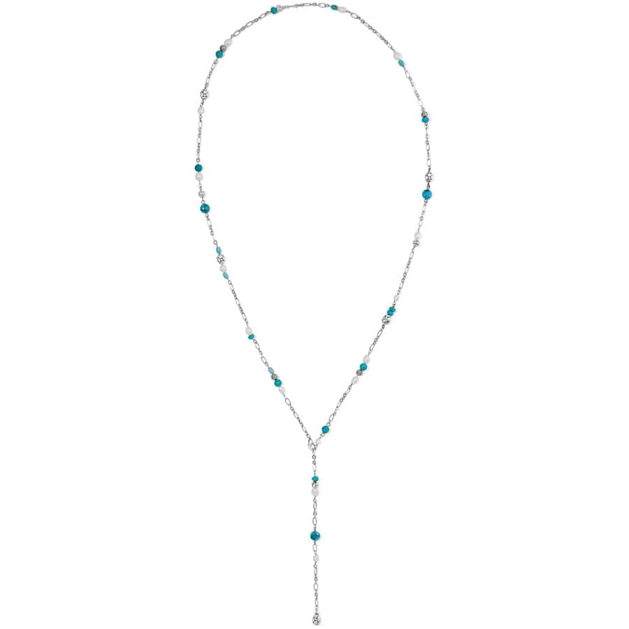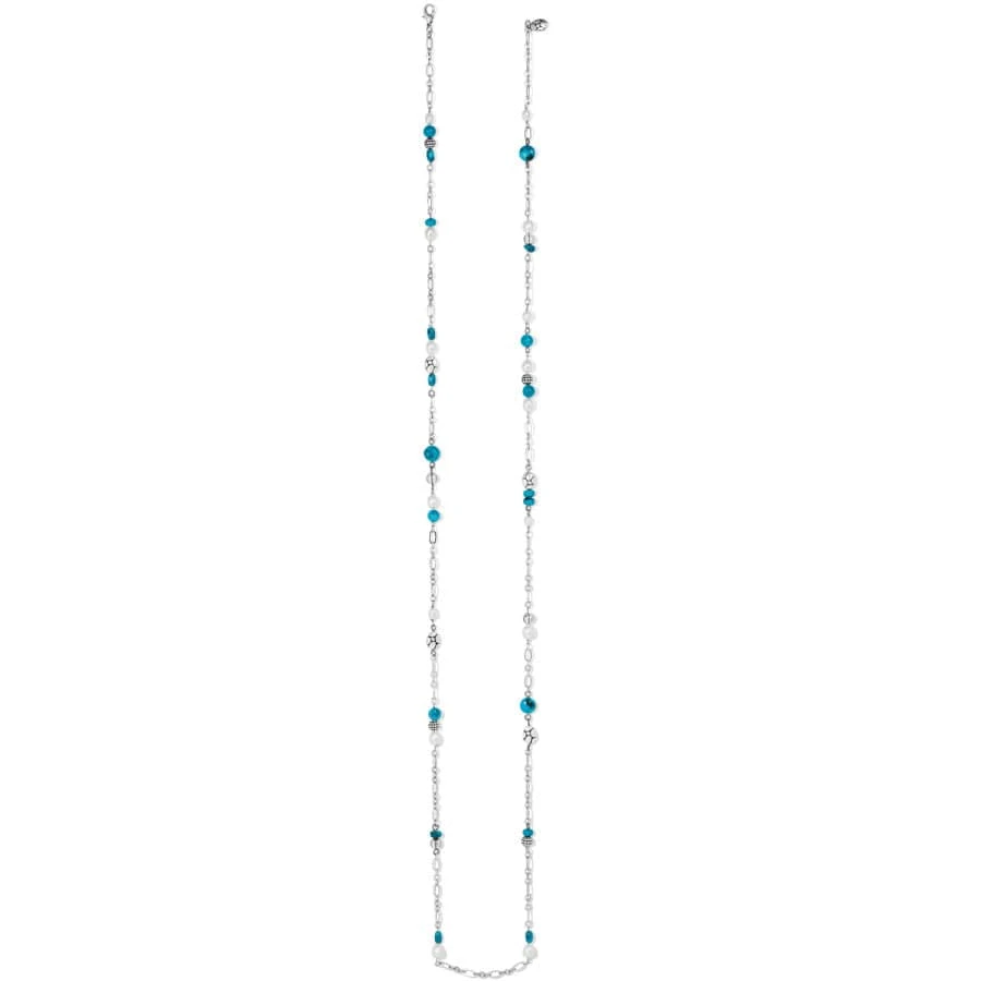 Our designer mixed turquoise magnesite beads and freshwater rice pearls with her Balinese-inspired pebble mosaics for a stunning design you can wear four ways: as a Y necklace, long, doubled as a shorter layered necklace and as a bracelet.